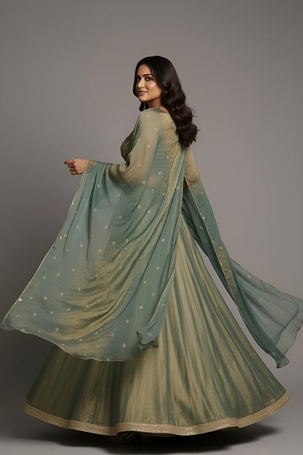 Peach Chinon Mukaish Jumpsuit with Shrug